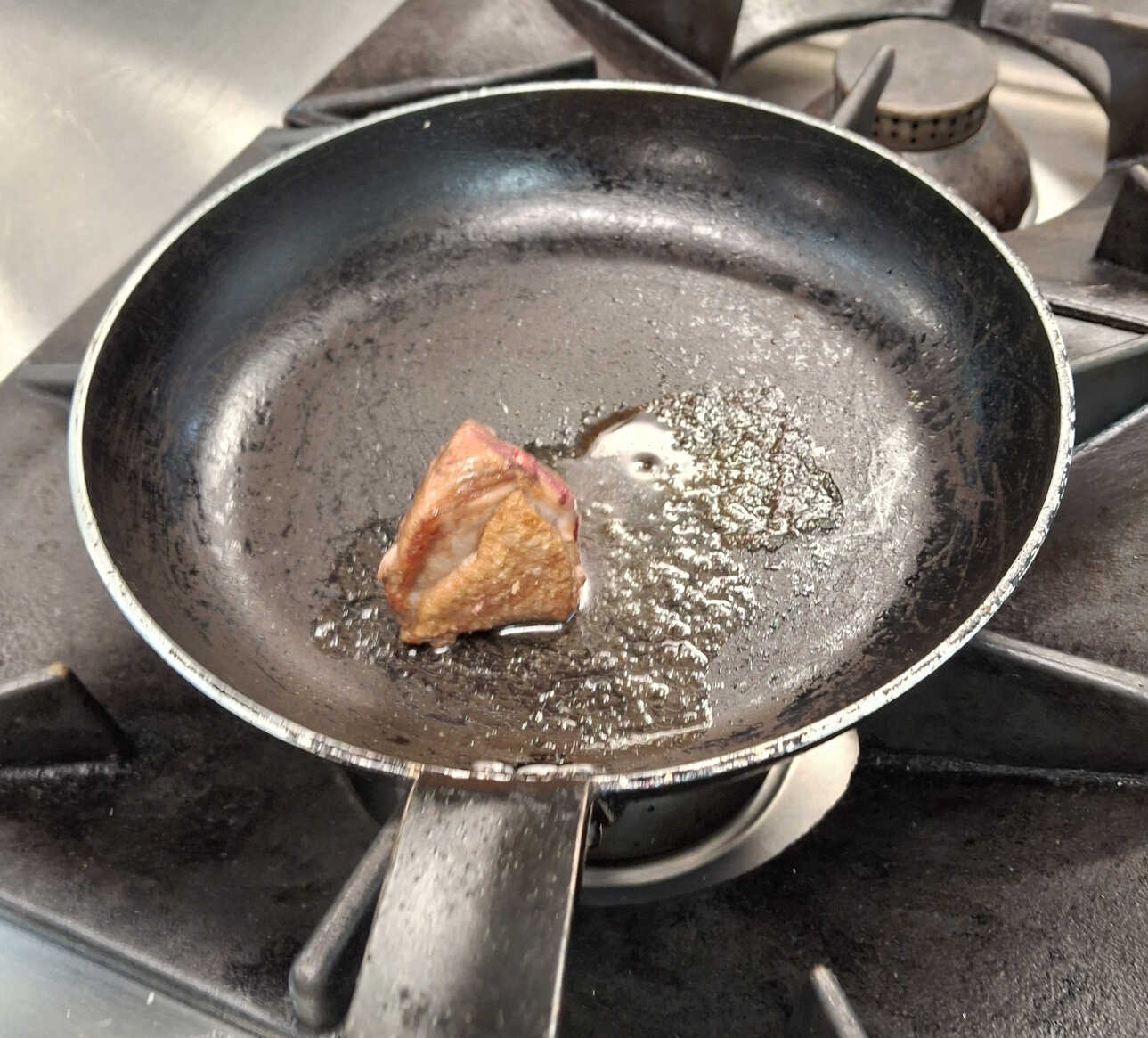 Place the breast skin-side down in a cold frying pan and put over a medium heat.