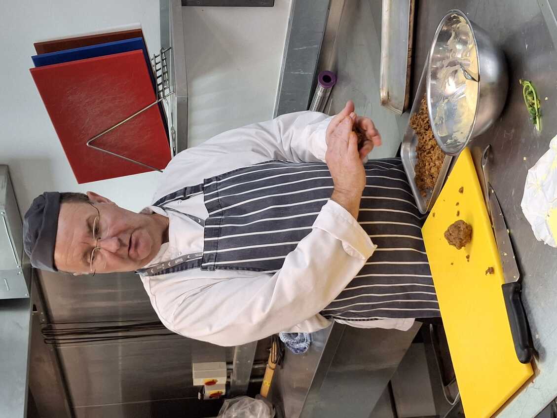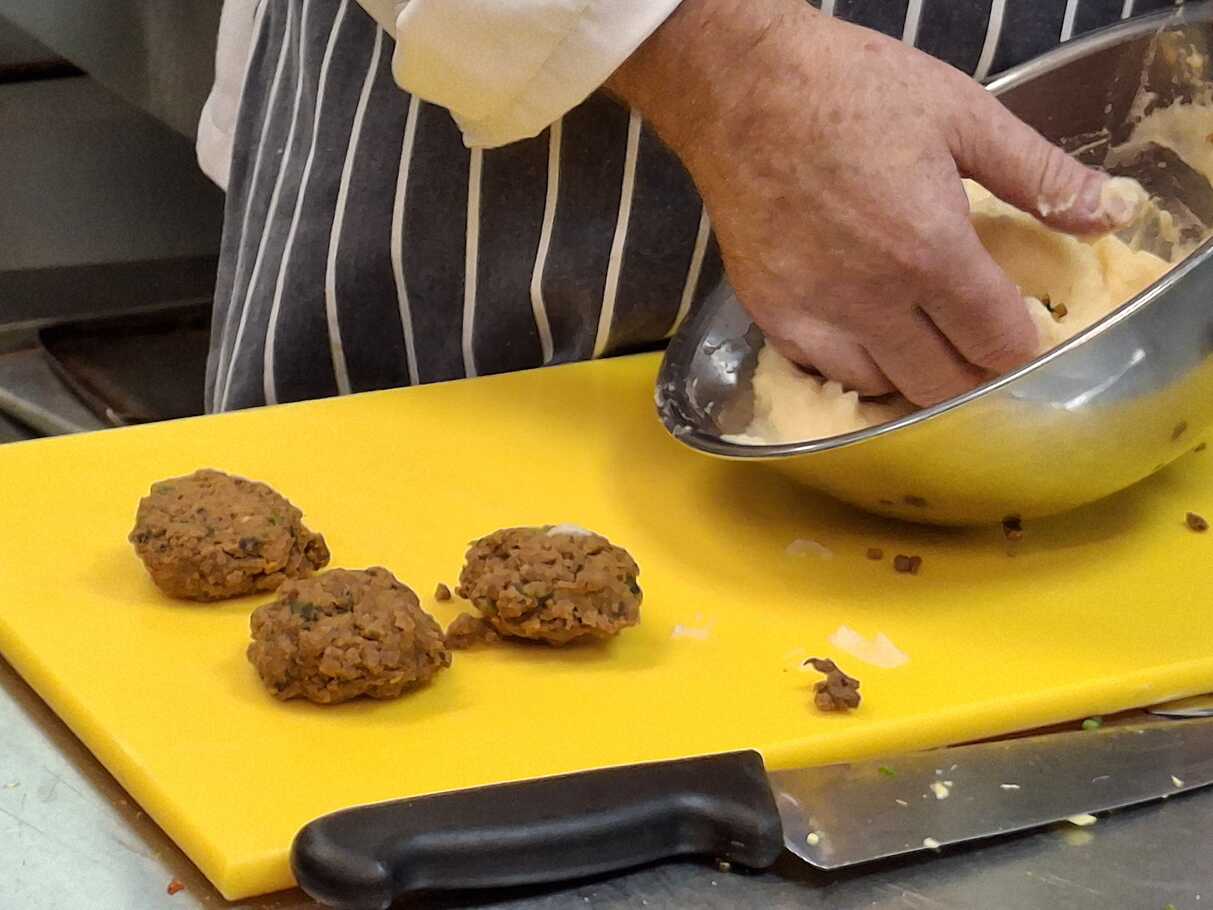 then very unusually we coat them with a potato batter, which consequently needs to be fairly sloppy.