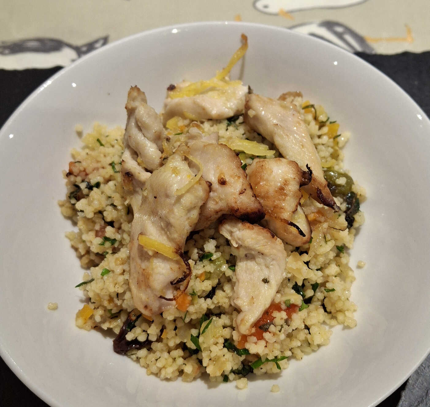 We also grilled up some delicious lemon garlic chicken to go on top. Because otherwise couscous is a bit boring.