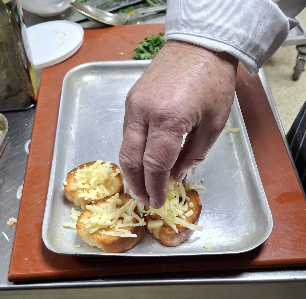 Put them on an oven tray and cover them with grated cheese. Stick them under a salamander or grill until the cheese melts, and remove.