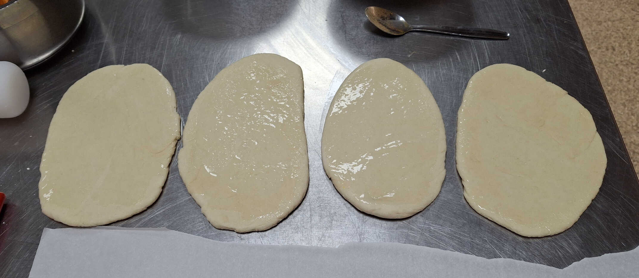 Lightly brush the top of each oval with a little vegetable oil. Then gently fold one side over the top to form a lip-shaped bun. Cover with a damp cloth and set aside to rest for a further 15-20 minutes.