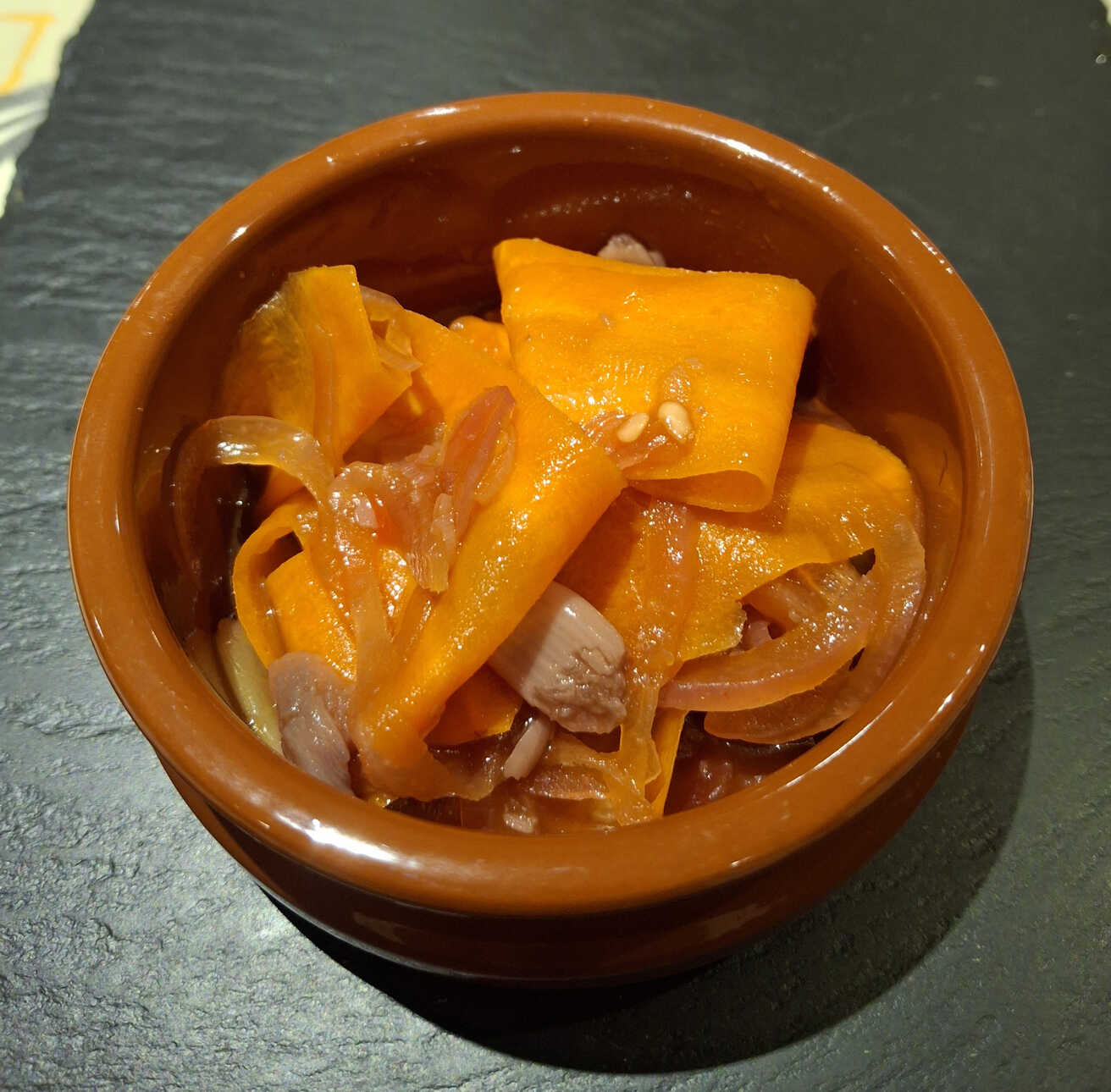Thinly slice the shallots and cut thin strips of carrot with a peeler.
