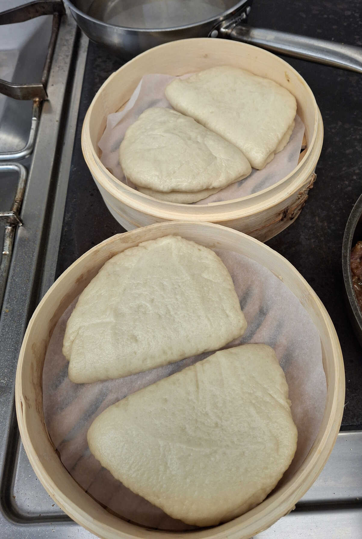 If using a metal steamer, take care not to overfill with water and keep your bao away from the sides (as the steam can't escape, the sides of metal steamers can get quite wet which may make your bao soggy).